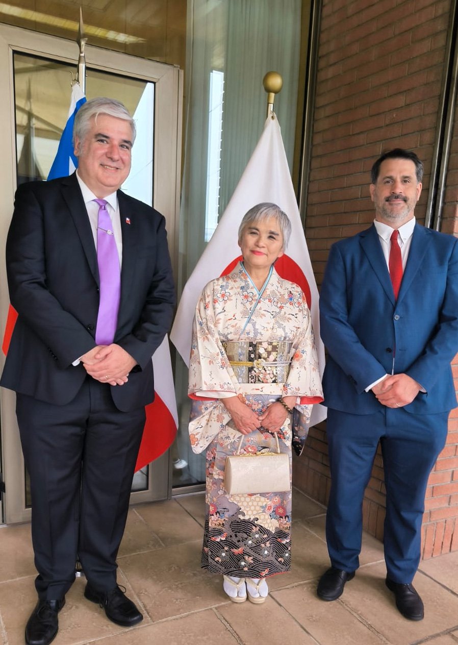 El jueves 20 de marzo, el Presidente de la Federación de Judo de Chile, Sr. Marcelo Simian, y el Gerente Técnico, Sr. Geoffroy Andrieux, fueron cordialmente recibidos por la Embajadora de Japón en Chile, Sra. Ito Takako, en su residencia oficial, con motivo del 65° cumpleaños de Su Alteza Imperial, el Emperador Naruhito.